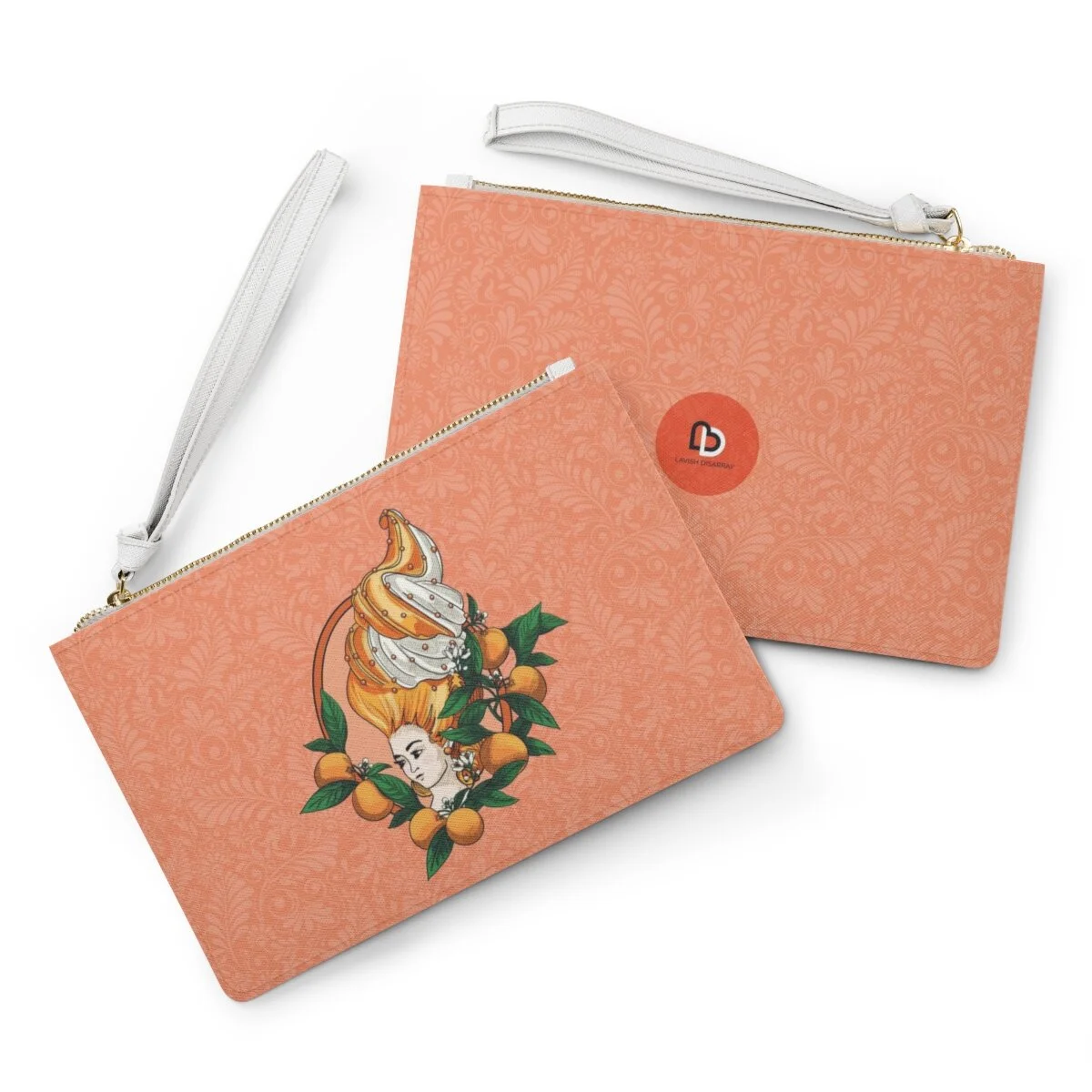 Designed with a loop handle to quickly free your hands, this custom clutch bag is made for the fashionista on the go. It can hold everyday essentials such as a phone, wallet, and keys. It features a zip fastening and a fully lined internal pocket. It is made of vegan leather in the Saffiano pattern finish that was invented by Prada.